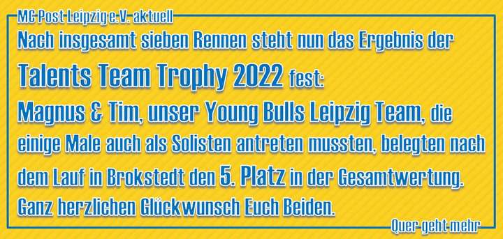 Insgesamt schließen unsere Young Bulls Magnus und Tim damit die diesjährige TTT auf Platz