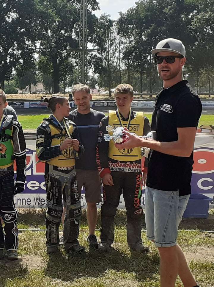 Am 30. Juli fand beim MSC Dohren e.V. auf der sehr kurzen und dadurch technisch besonders anspruchsvollen Bahn der fünfte Lauf der TTT statt. Unsere Junioren Magnus und Tim kamen sehr gut zurecht und belegten den achtbaren 4. Platz. Magnus trat einen Tag später zur dmsj Klasse B an und konnte im sehr starken Feld den 5. Platz belegen. Es ist Magnus zweite Saison in der Klasse B 125ccm und Tim startet in der TTT seine erste Rennsaison überhaupt. Klasse!