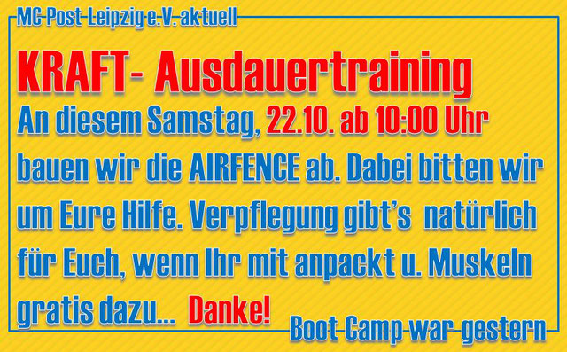 An diesem Samstag, 22.10. ist es soweit: Air Fence Abbau im Motodrom