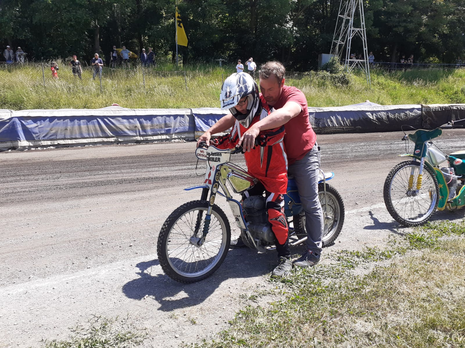 Unser diesjähriges internationales Old & Hard Speedwaytreffen war wieder eine große Freude. Nach der Großveranstaltung Speedway Sunday am 30.04.2023 waren wir froh darüber, diesmal in einem etwas kleineren Rahmen mit unseren Vereinsmitgliedern und Gästen Speedway im Motodrom fahren zu können, und zwar in einer ganz entspannten Atmosphäre ohne Eintrittsgeld und ohne den Druck einer Rennveranstaltung. Der Tag war sonnig und unser Imbiss war geöffnet. Obwohl wir die Veranstaltung nicht groß beworben hatten, fanden sich doch einige interessierte Leipziger Zuschauer im Motodrom ein. Das Fahrerfeld war international und reichte vom Schulanfänger bis zum Rentner.