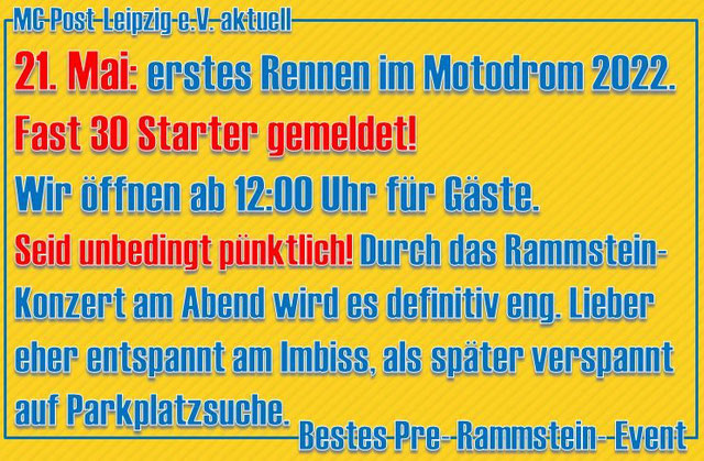 Wichtiger Hinweis: Seid pünktlich da. Am Abend spielt Rammstein in der Redbull-Arena und da