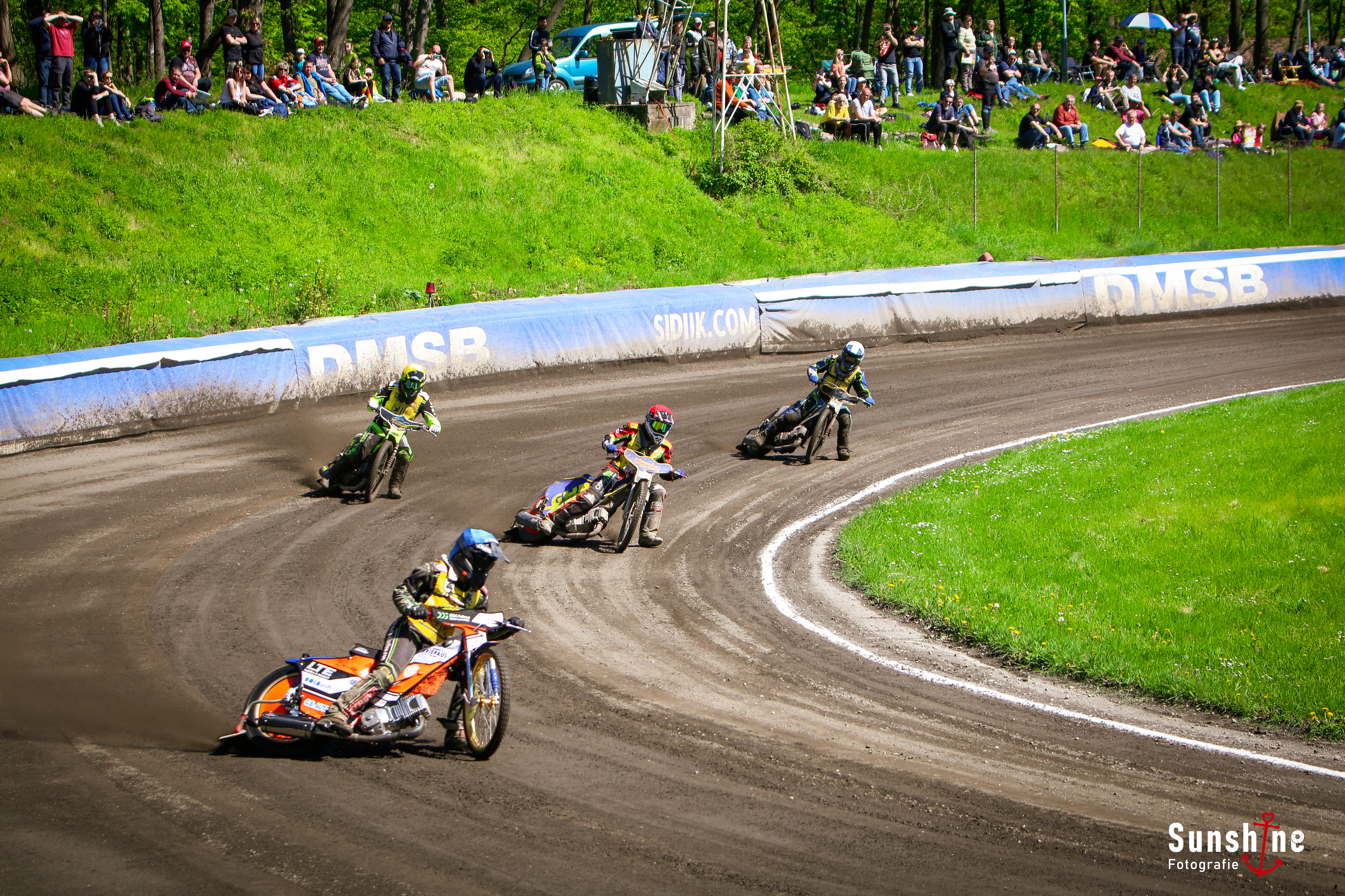 Mit vielen hezrlich lachenden Gesichtern endete unser Speedway Sunday am Nachmittag des 30. April mit einer sprudelnden Sektdusche und vor allem ohne ernste Verletzungen. Wenn dazu der Norddeutsche Schiedsrichter des Deutschen Motor Sport Bundes zum Abschluss sagt: „Wir kommen gern wieder und das ist keine Drohung“, dann kann man als Veranstalter zufrieden sein.
